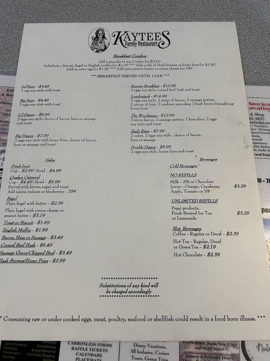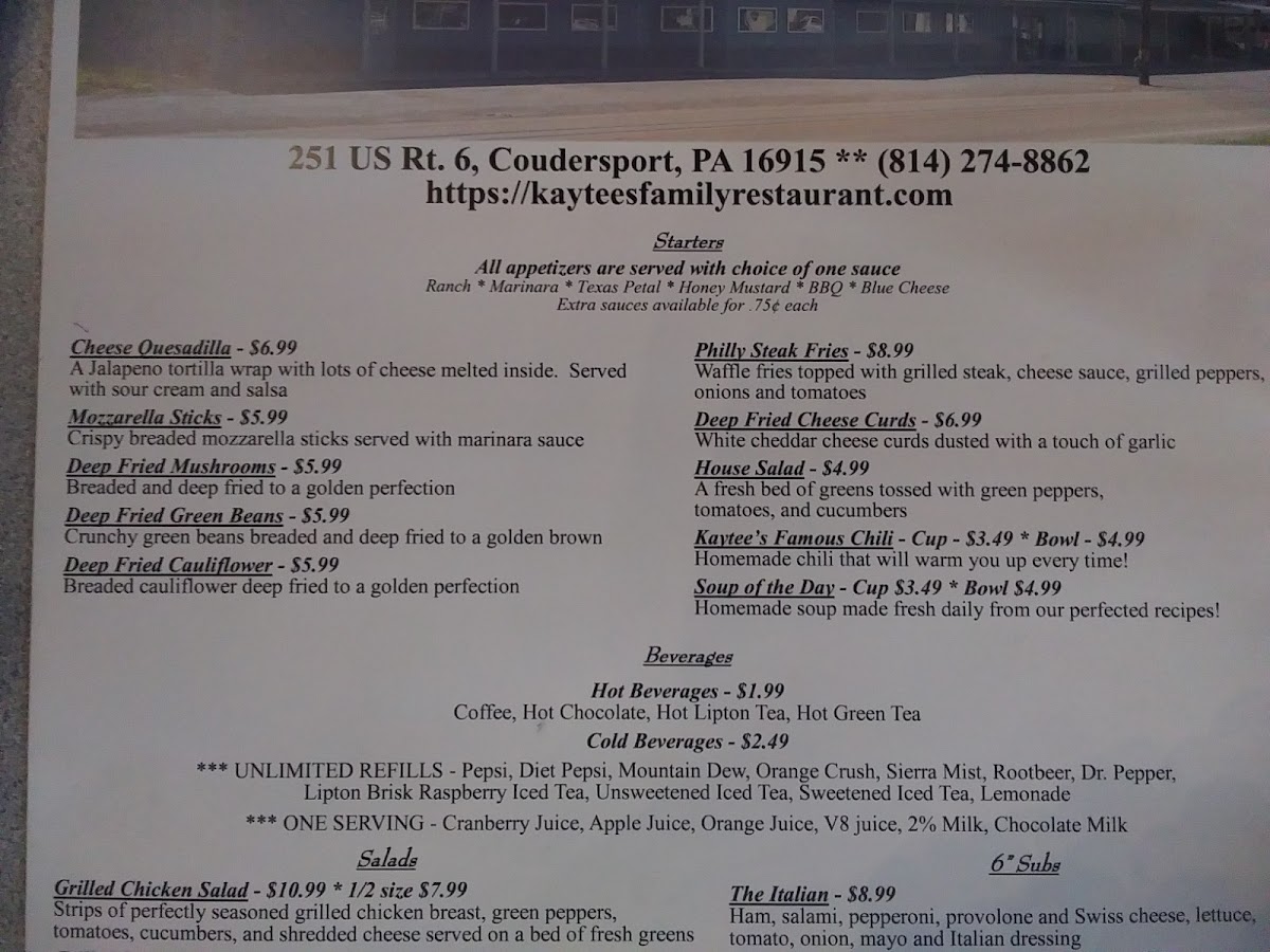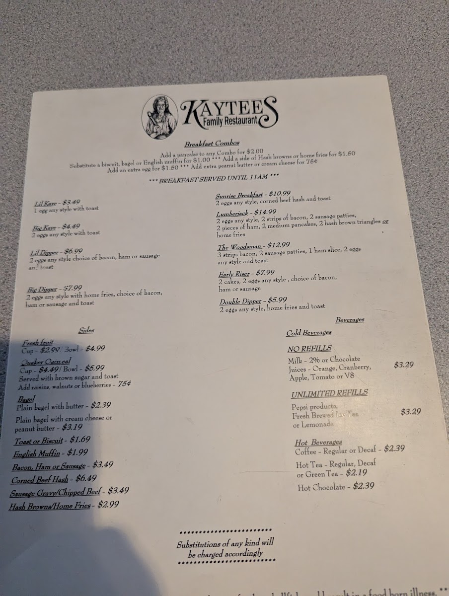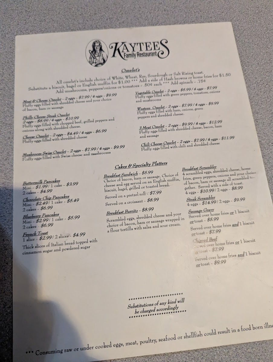 Kaytee's Family Restaurant and Marketplace Menu